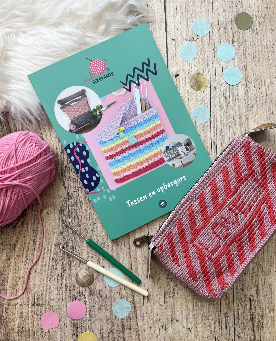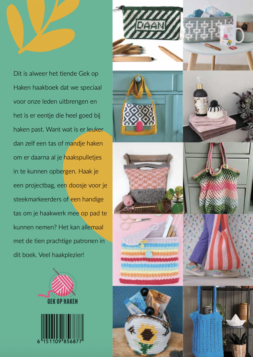 Dit is het tiende haakboek dat we speciaal voor onze leden uitbrengen en het is er eentje die heel goed bij haken past. Want wat is er leuker dan zelf een tas of mandje haken om er daarna al je haakspulletjes in te kunnen opbergen. Haak je een projectbag, een doosje voor je steekmarkeerders of een handige tas om je haakwerk mee op pad te kunnen nemen? Het kan allemaal met de tien prachtige patronen in dit boek. Veel haakplezier!