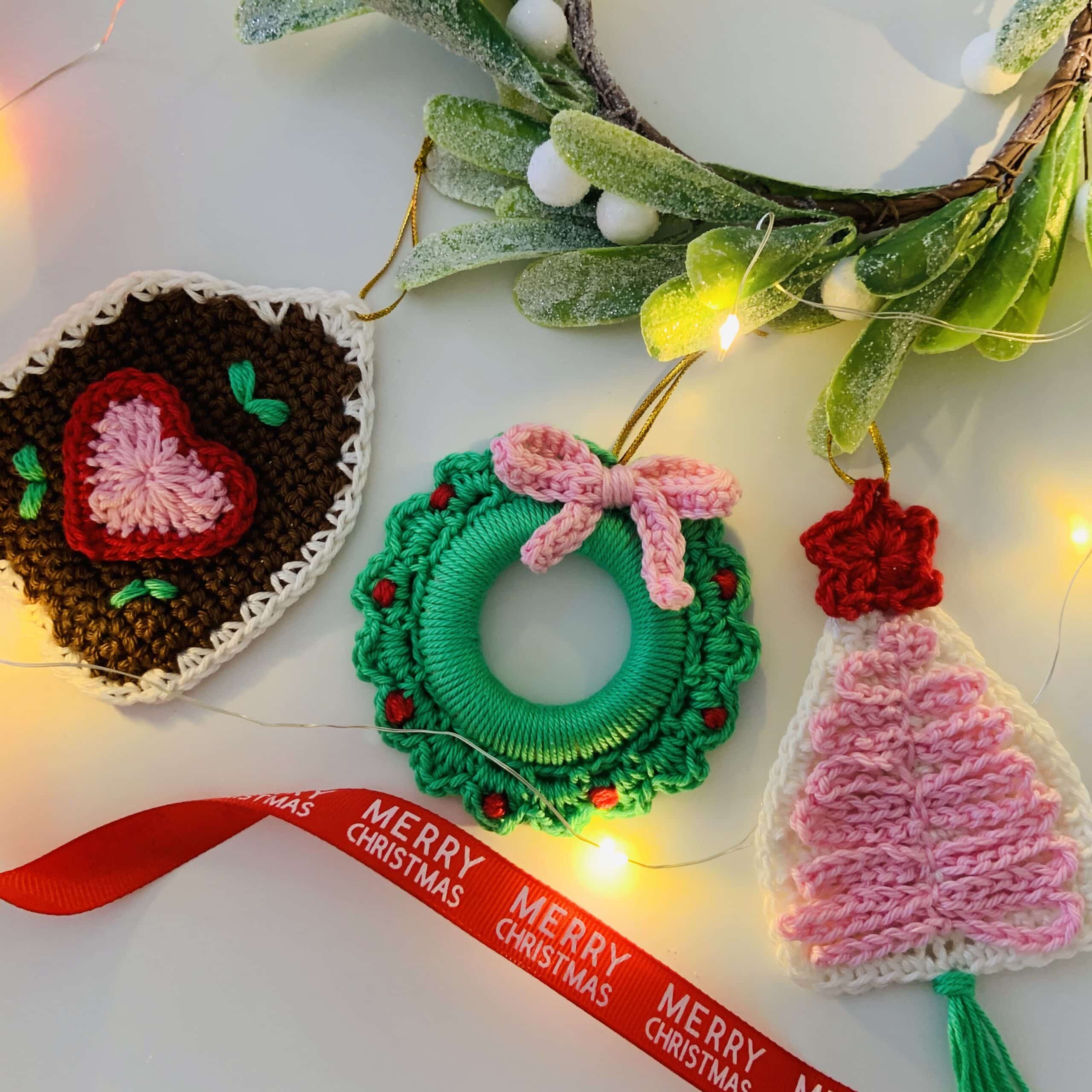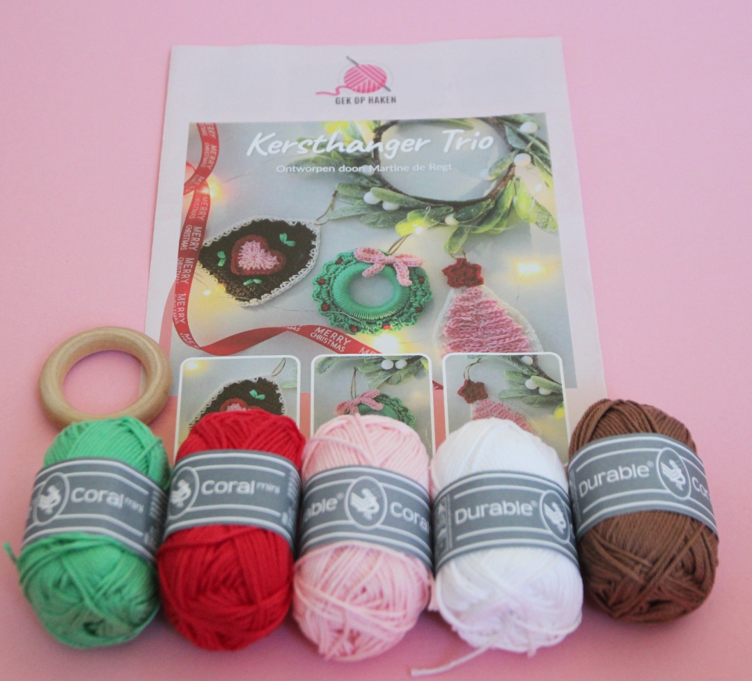Met dit handige haakpakket haak je drie vrolijke kersthangers! Hang ze gezellig in de kerstboom of aan een krans. Je kunt ze ook gebruiken als cadeaulabel om een cadeautje mee in te pakken.